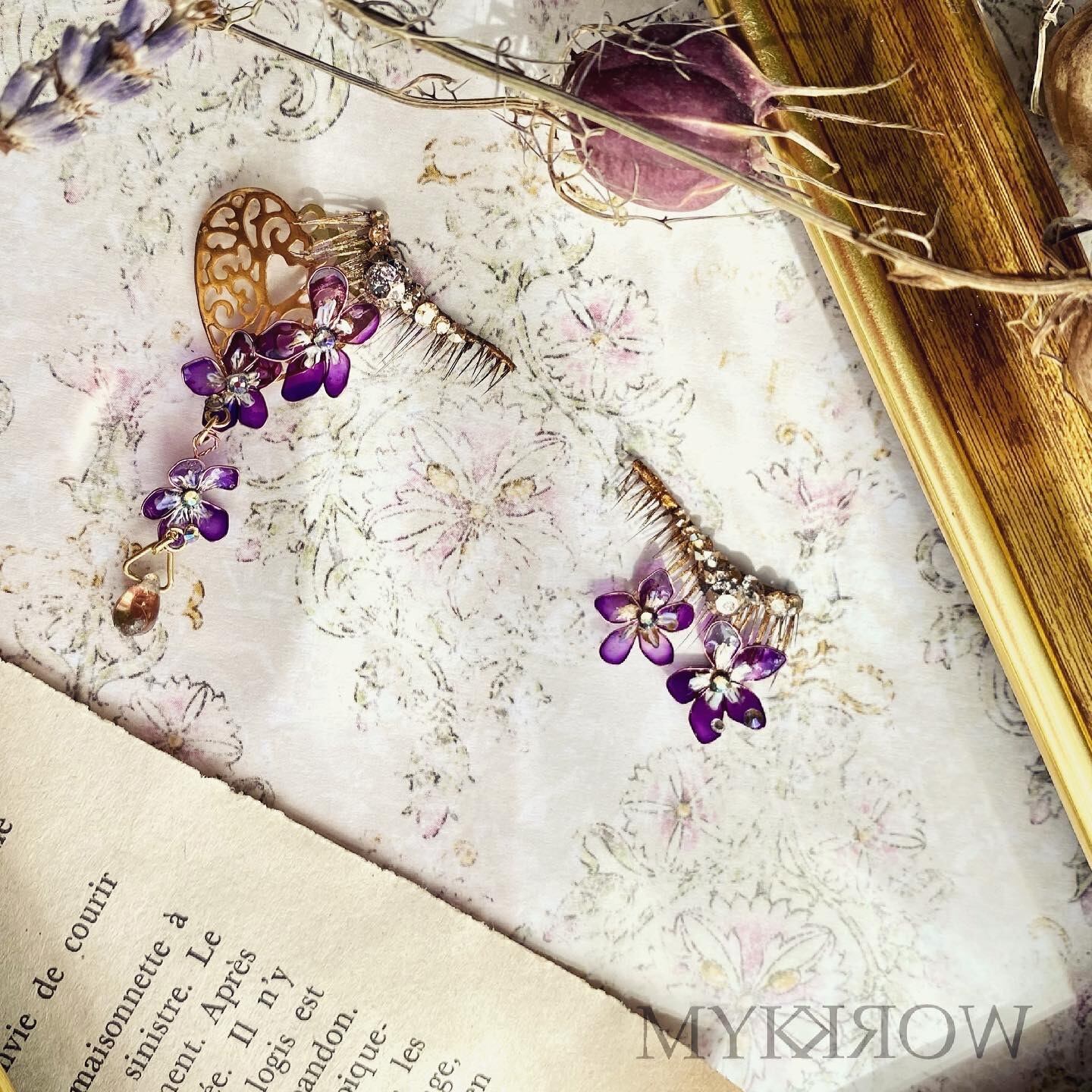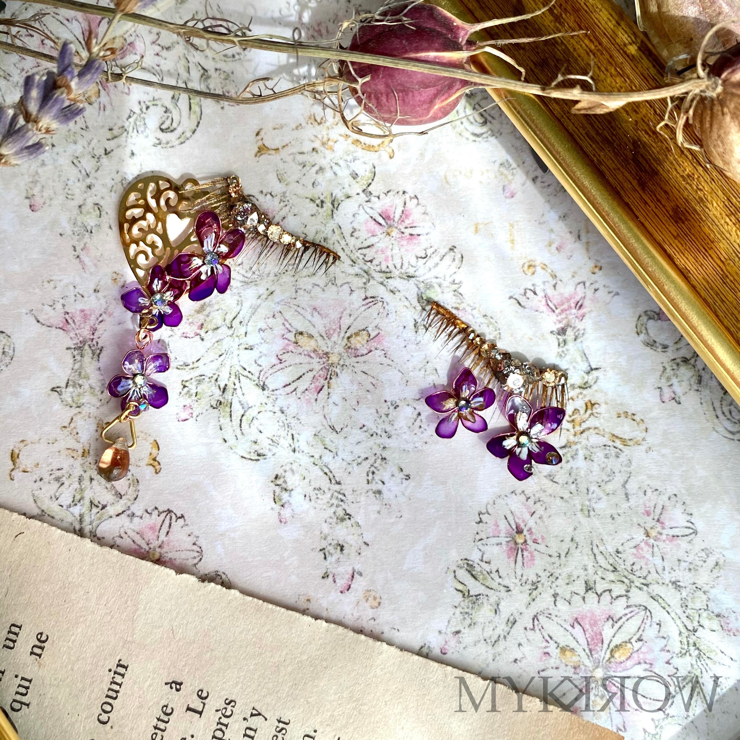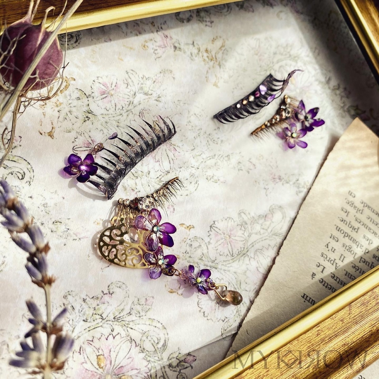 菫の花と、葉をイメージしたレースハートのメタルパーツを合わせた下まつげ「すみれの涙」