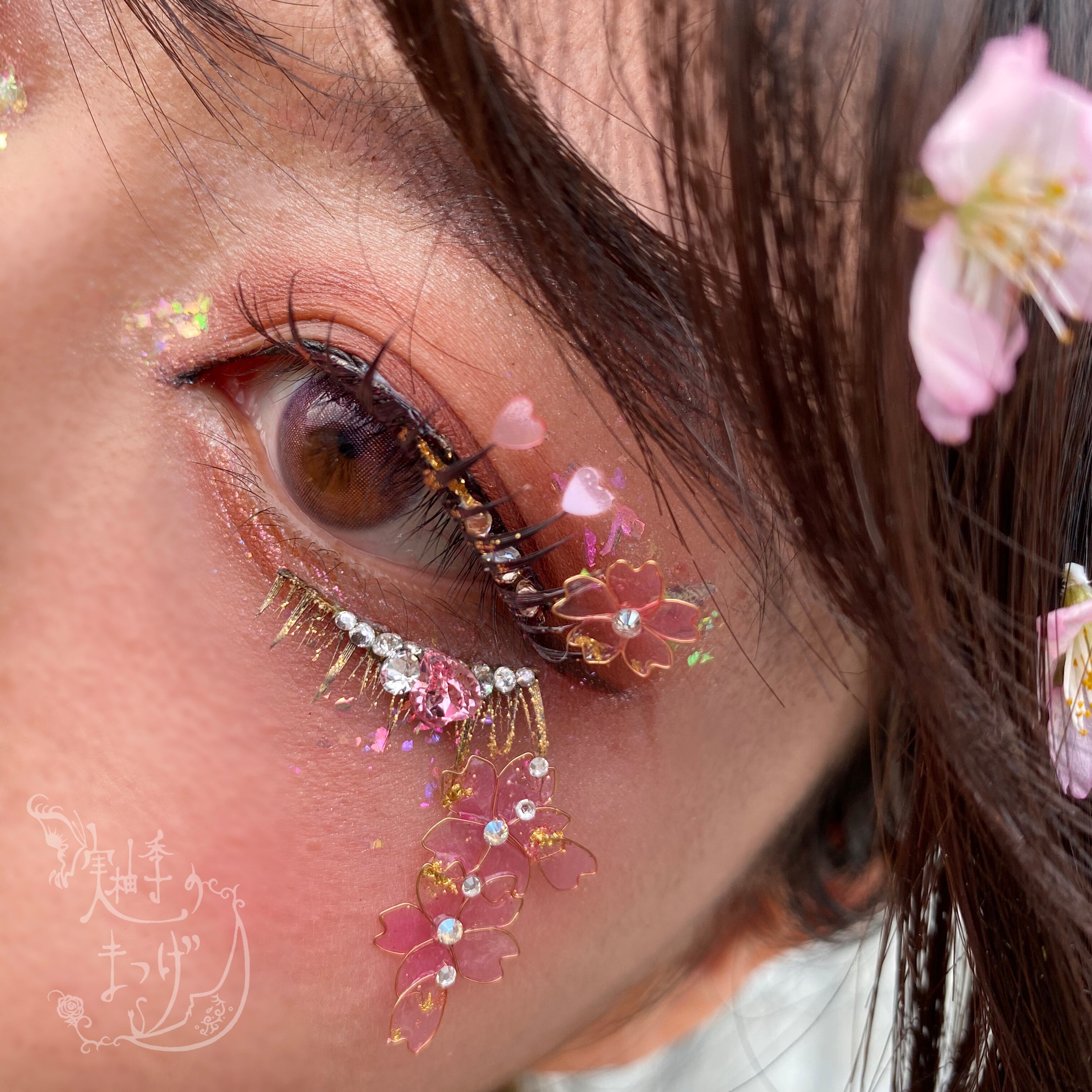 一輪の桜を目尻にあしらった上まつげ「桜の花」
