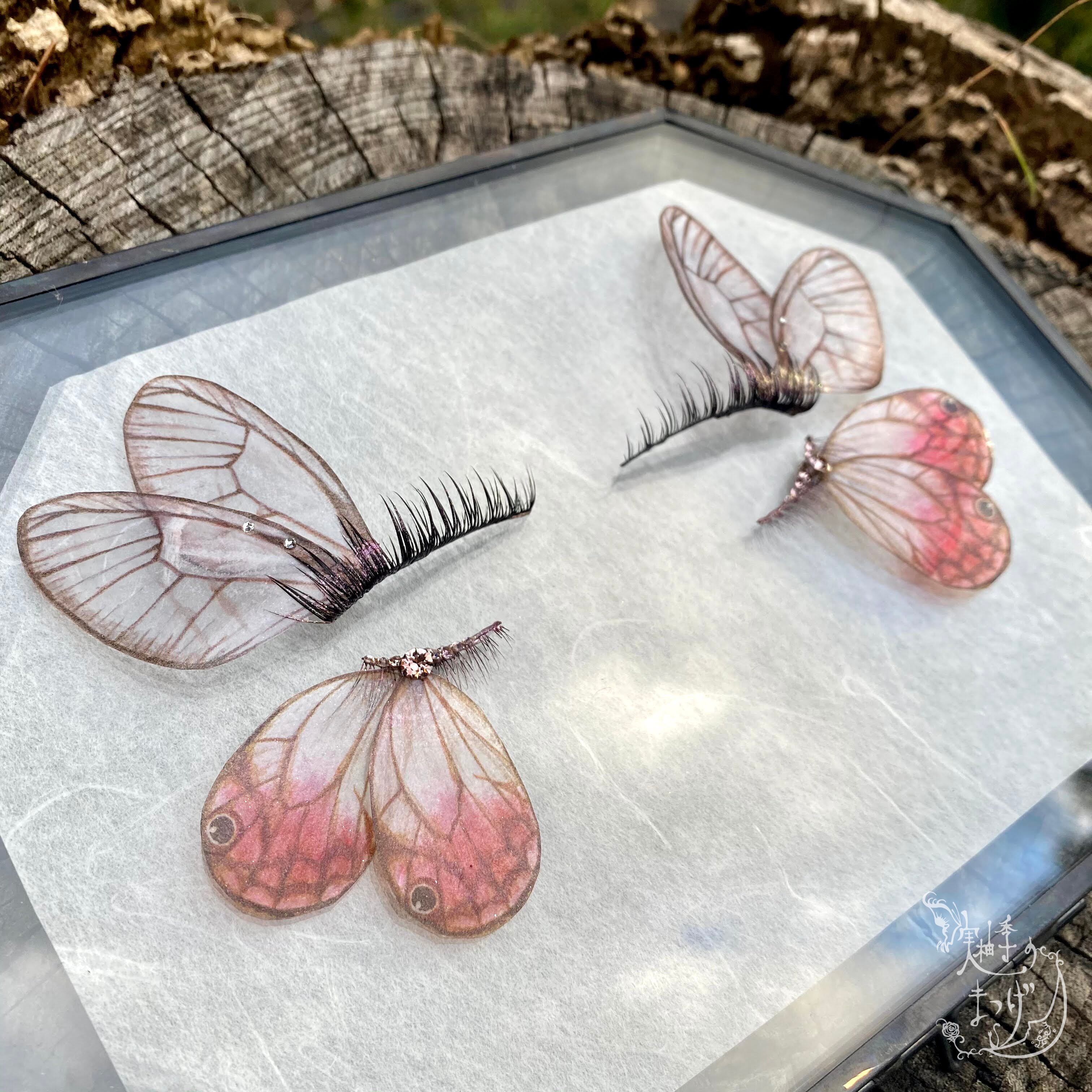 繊細な透け感の美しい、オリジナルの翅パーツを使用した特別なつけまつげ。
