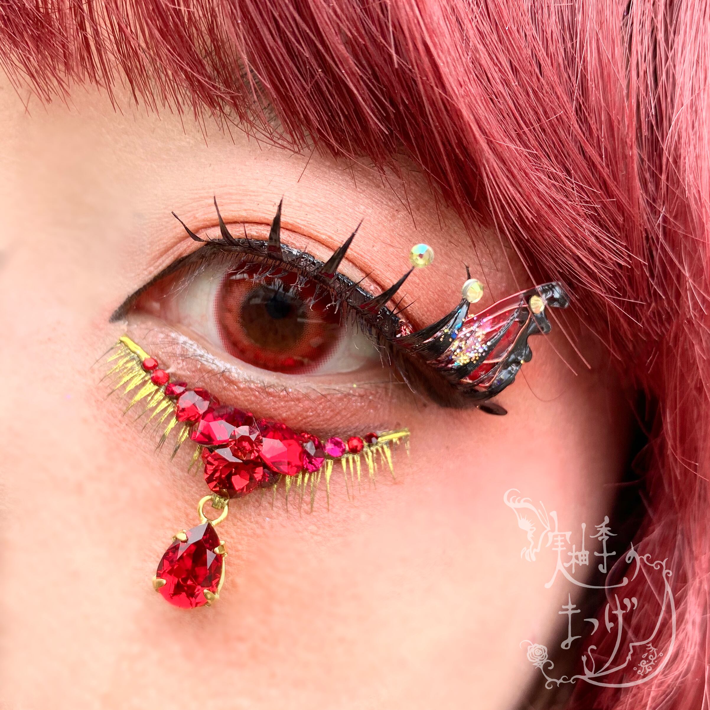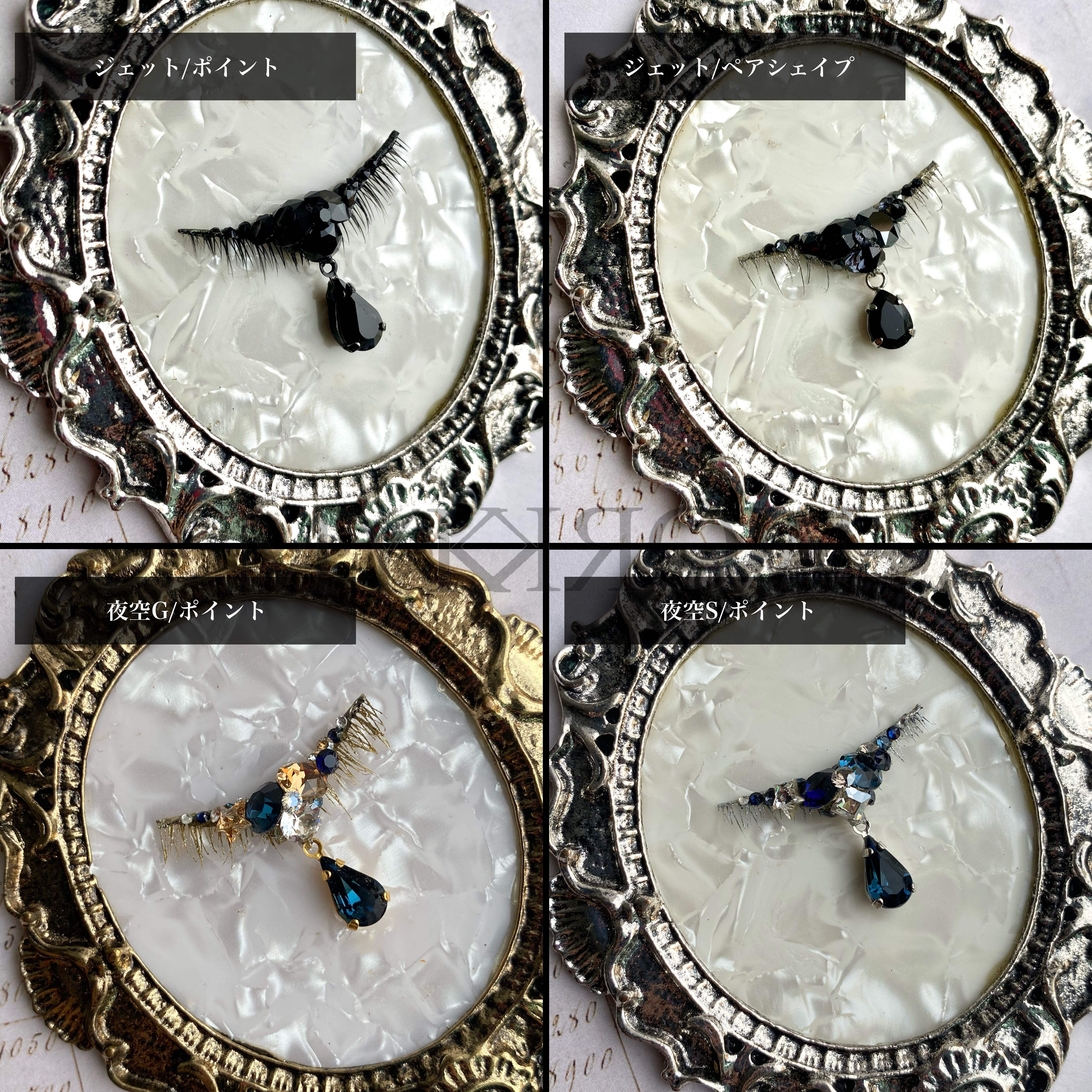 ・素材:人工毛つけまつげ/ガラスストーン/プレシオサ/メッキ金属/接着剤/ラメ/チェコガラス